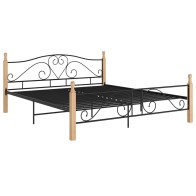 Bettgestell Schwarz Metall und Massivholz...