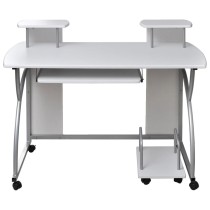 Mit diesem eleganten und funktionalen Schreibtisch bringen Sie eine Ikone des modernen Glamours der Mitte des Jahrhunderts in Ihr Interieur! Aus massivem Mahagoniholz mit weißem Finish gefertigt, ist der Schreibtisch äußerst langlebig und robust. Mahagoni ist ein tropisches Hartholz, das sich durch Schönheit, Haltbarkeit und eine einzigartige Farbe auszeichnet. Dieser Computertisch verfügt über 2 Schubladen, die Platz für Bücher und andere Schreibwaren bieten.