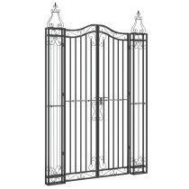 Dieses dekorative Gartentor mit eleganten Schmiedekunst-Pfosten bietet einen idealen Eingangspunkt am Zaun um deinen Garten oder deine Terrasse. Langlebiges Material: Das Gartentor ist aus pulverbeschichtetem Schmiedeeisen gefertigt um eine lange Lebensdauer zu gewährleisten. Schmiedeeisen ist ein belastbares, formbares, korrosionsbeständiges und dehnbares Eisen, das sich perfekt für den Einsatz im Außenbereich eignet.Abschließbar: Das Gartentor aus Schmiedeeisen ist mit einer Bolzenverriegelung für das schnelle Abschließen und Öffnen ausgestattet.Schmiedekunst-Design: Die Pfosten aus Schmiedeeisen bieten eine starke Stütze und sicheren Halt und stellen attraktive Ergänzung für deinen Hof oder Garten dar.Elegantes Aussehen: Elegante Formen und dekorative Akzente machen das Tor zu einem optischen Highlight im Außenbereich.